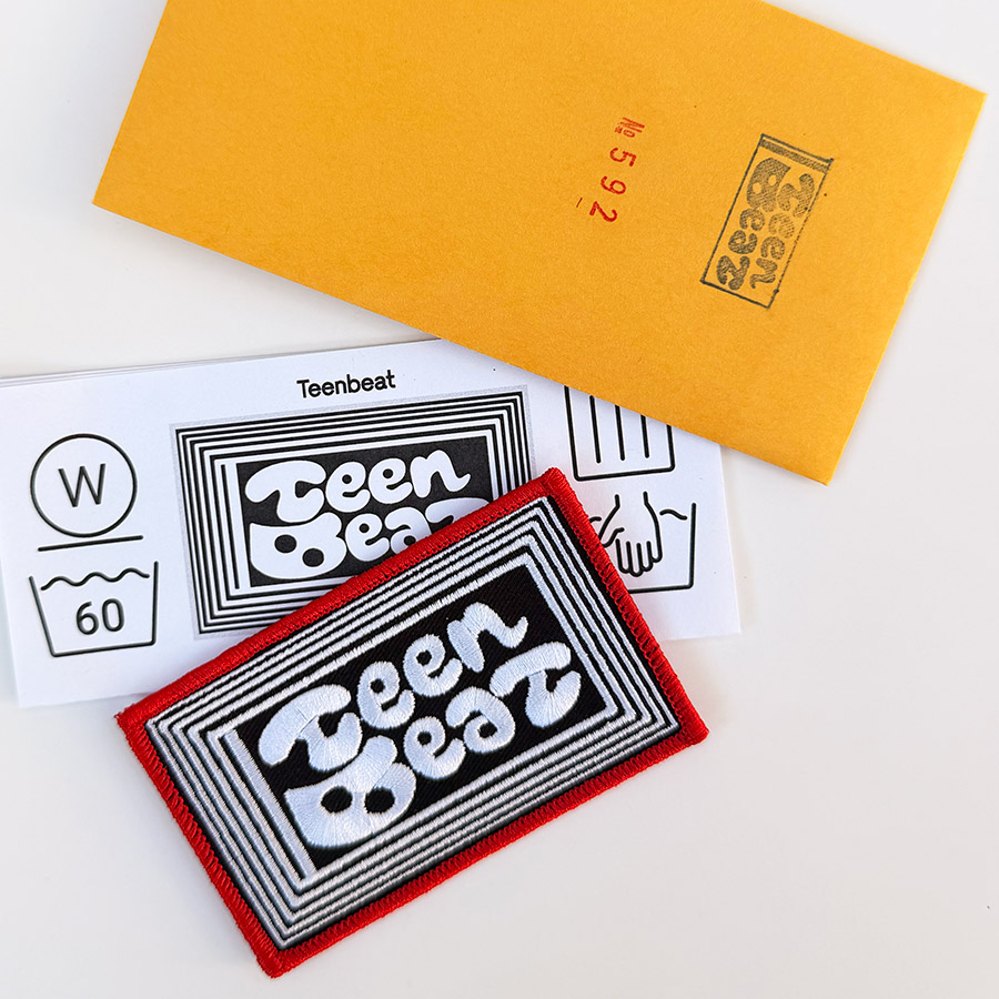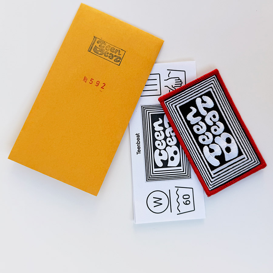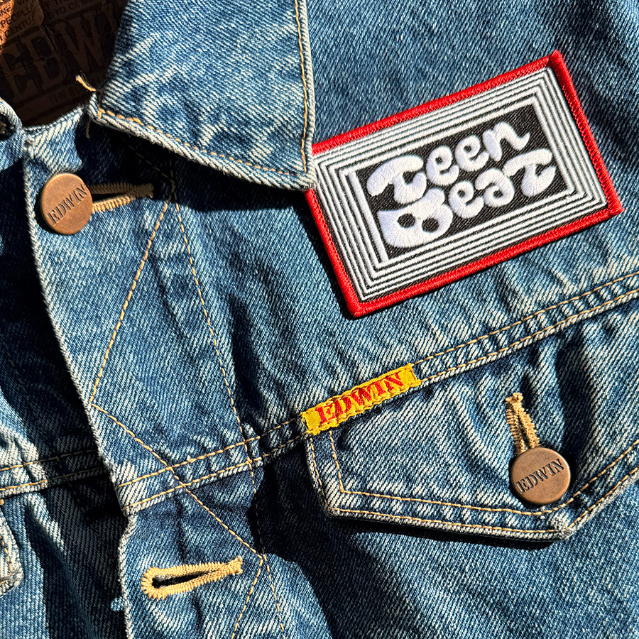 Our Teen-Beat embroidered patch features our Teenbeat "infinity logo" in black and white with a striking bright red border. It includes detailed instructions on how to apply the patch to your denim jacket, a jacket made from a different material, hat, jeans, backpack, shirt, footwear, or anything else your mind can dream up.